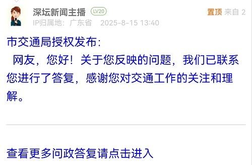 各職能單位如需對網(wǎng)友反映的問題進行回應,可在深圳論壇注冊官方賬號并通過認證,回帖進行回應。