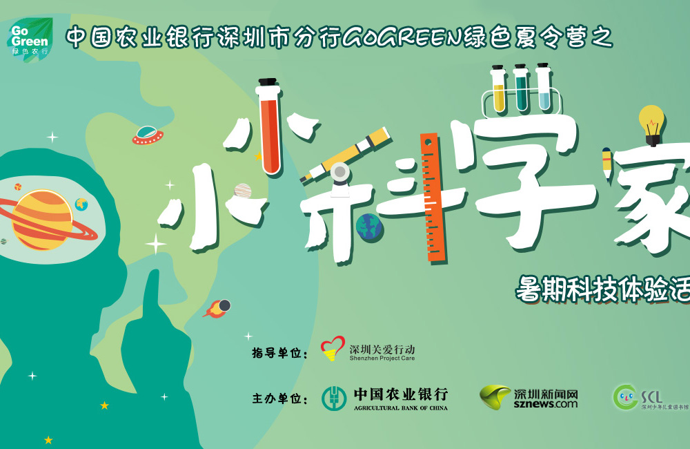 GO GREEN綠色夏令營之“小小科學(xué)家”活動由深圳市關(guān)愛辦、中國農(nóng)業(yè)銀行深圳市分行、深圳新聞網(wǎng)、深圳市少年兒童圖書館聯(lián)合舉辦。2個小時的活動,讓孩子開動腦筋,跟著老師學(xué)習(xí)融合物理實(shí)驗(yàn)、化學(xué)原理,為一體的十大科學(xué)/科技項(xiàng)目。[詳細(xì)]