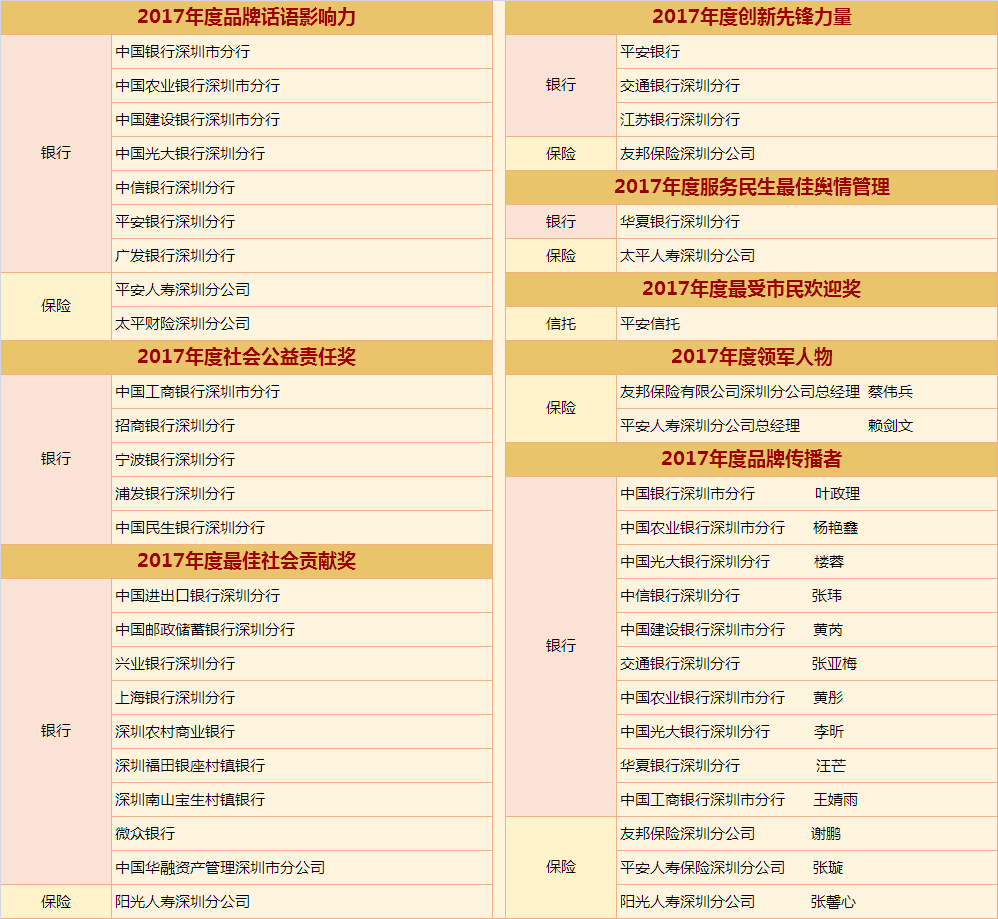 2017年,深圳金融實現快速發(fā)展。為了讓金融真正回歸服務實體經濟的本源,真正脫虛向實,深圳新聞網將聯手行業(yè)權威協會、第三方機構、媒體,以“新時代·新服務·新金融”為主題,以深圳金融機構如何回歸本原、改革創(chuàng)新、服務實體經濟為核心,從“品牌話語影響力”、“創(chuàng)新先鋒力量”、“輿情管理 服務民生”三個角度出發(fā),邀請眾多金融機構共同發(fā)力,自覺加入金融回歸服務實體經濟本源這一滾滾時代洪流中來。作為一個金融公民,我們也盡一份該盡的社會責任,為市民遴選最能代表深圳本地實力及形象的金融機構,同時頒發(fā)重磅大獎:“金桐獎——年度品牌話語影響力”、“金桐獎——年度創(chuàng)新先鋒力量”、“金桐獎——服務民生最佳輿情管理”。