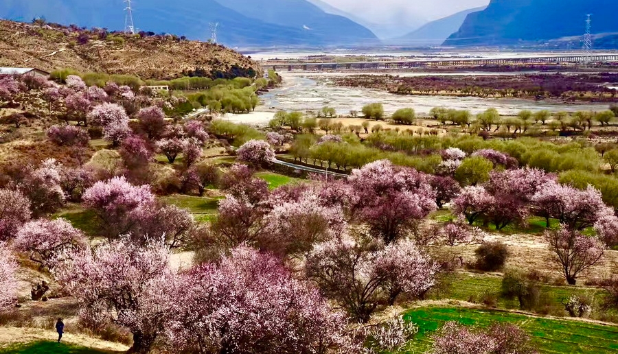 帶你看看與雪山相映成趣的桃林有多美