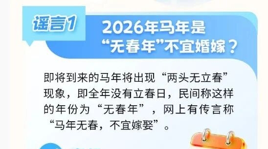 據(jù)了解,所謂的“無春”,指的是即將到來的2026年馬年將出現(xiàn)“無立春”現(xiàn)象,即全年沒有立春日,民間稱這樣的年份為“無春年”。